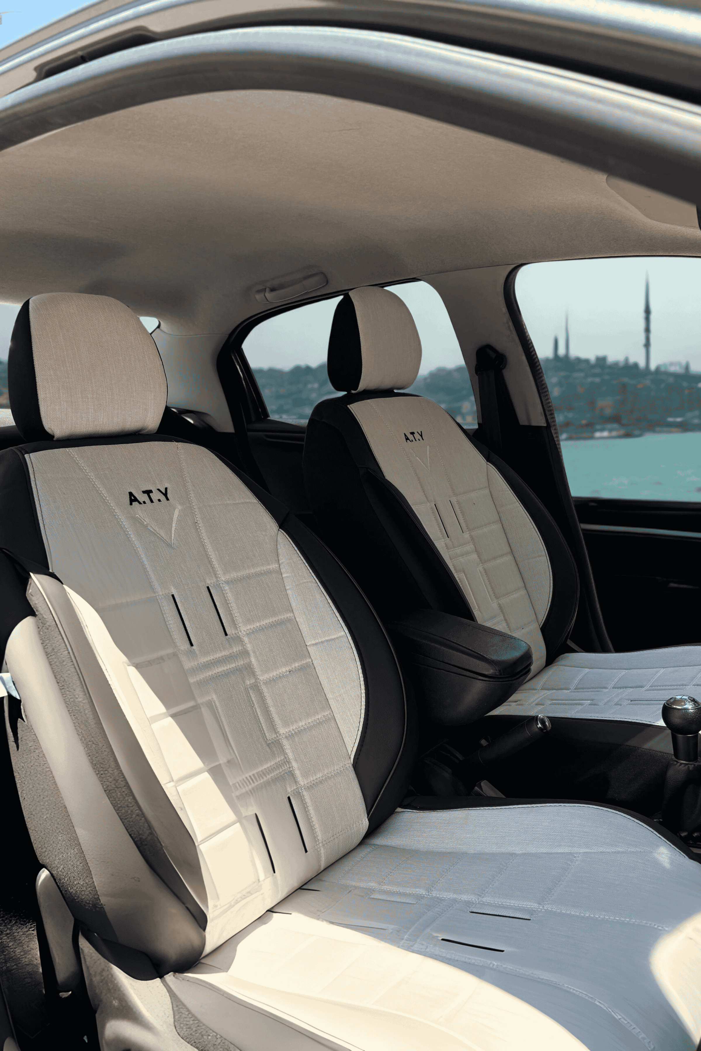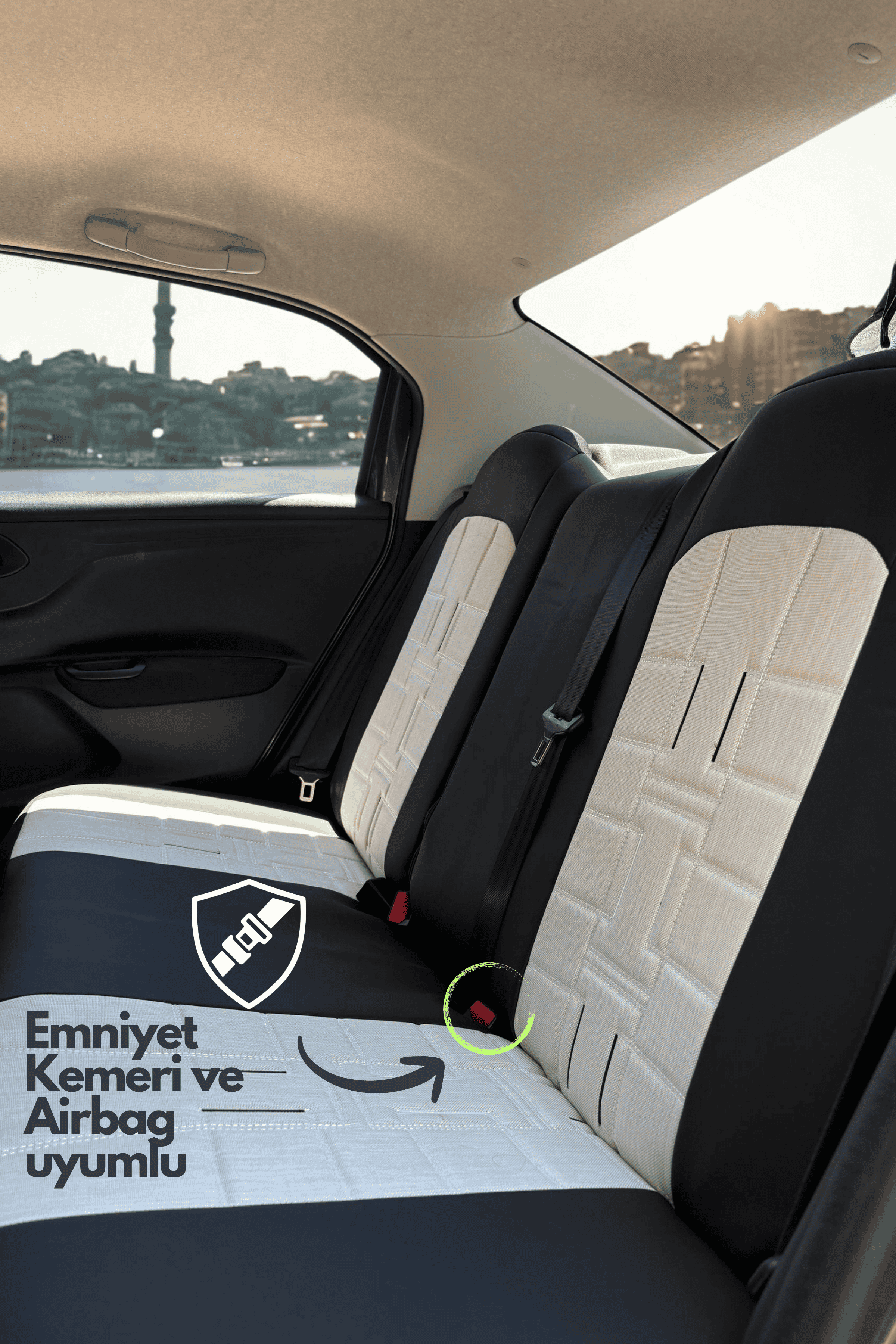 PREMIUM SERİSİ - BEYAZ KETEN VE DERİ KOLTUK KILIFI & Ön Arka 5 Koltuk Tam Set