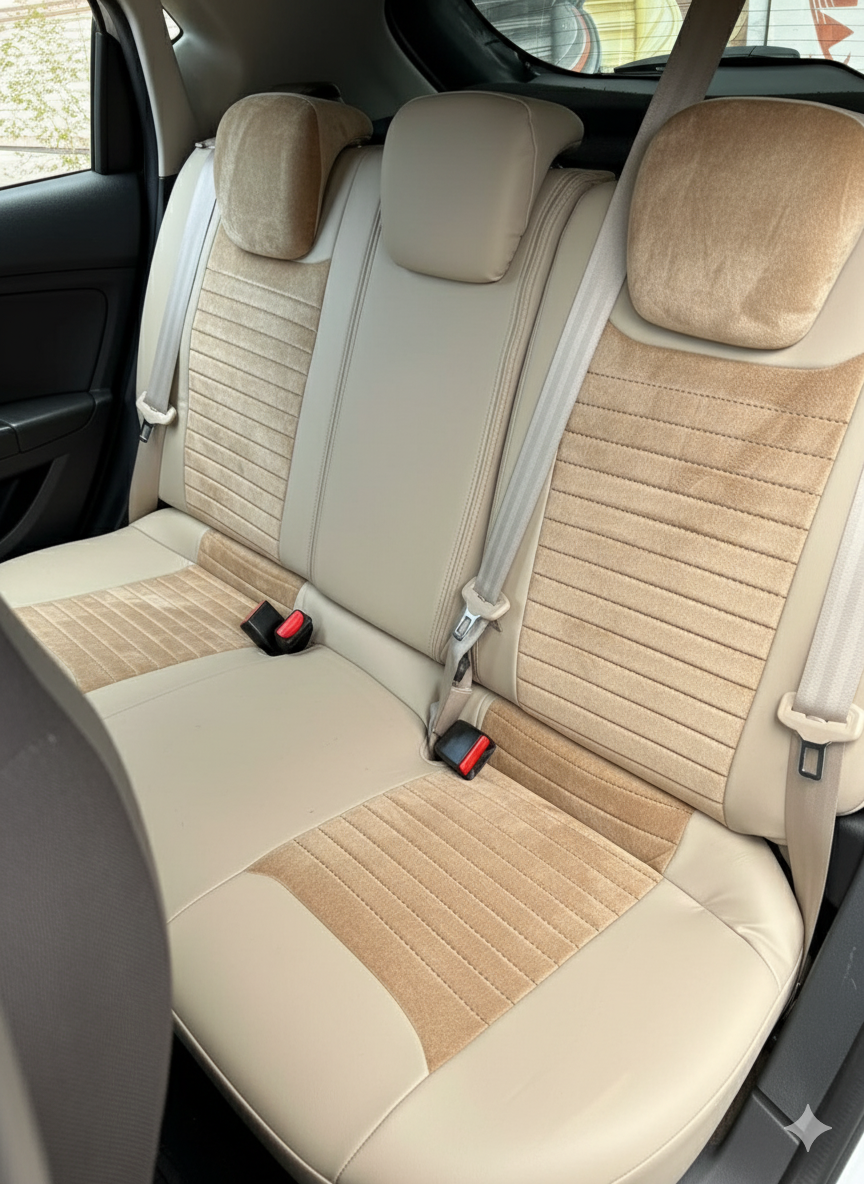 Bej Babyface kumaş ile deri kombinasyonu, modern bir görünüm sunarken, aracınızın iç mekanını estetik bir şekilde tamamlar. Sport Serisi, sadece işlevselliği değil, aynı zamanda zarafeti de ön planda tutar. Her detayı düşünülerek tasarlanan bu koltuk kılıfı seti, sade ve şık çizgileri ile dikkat çeker.